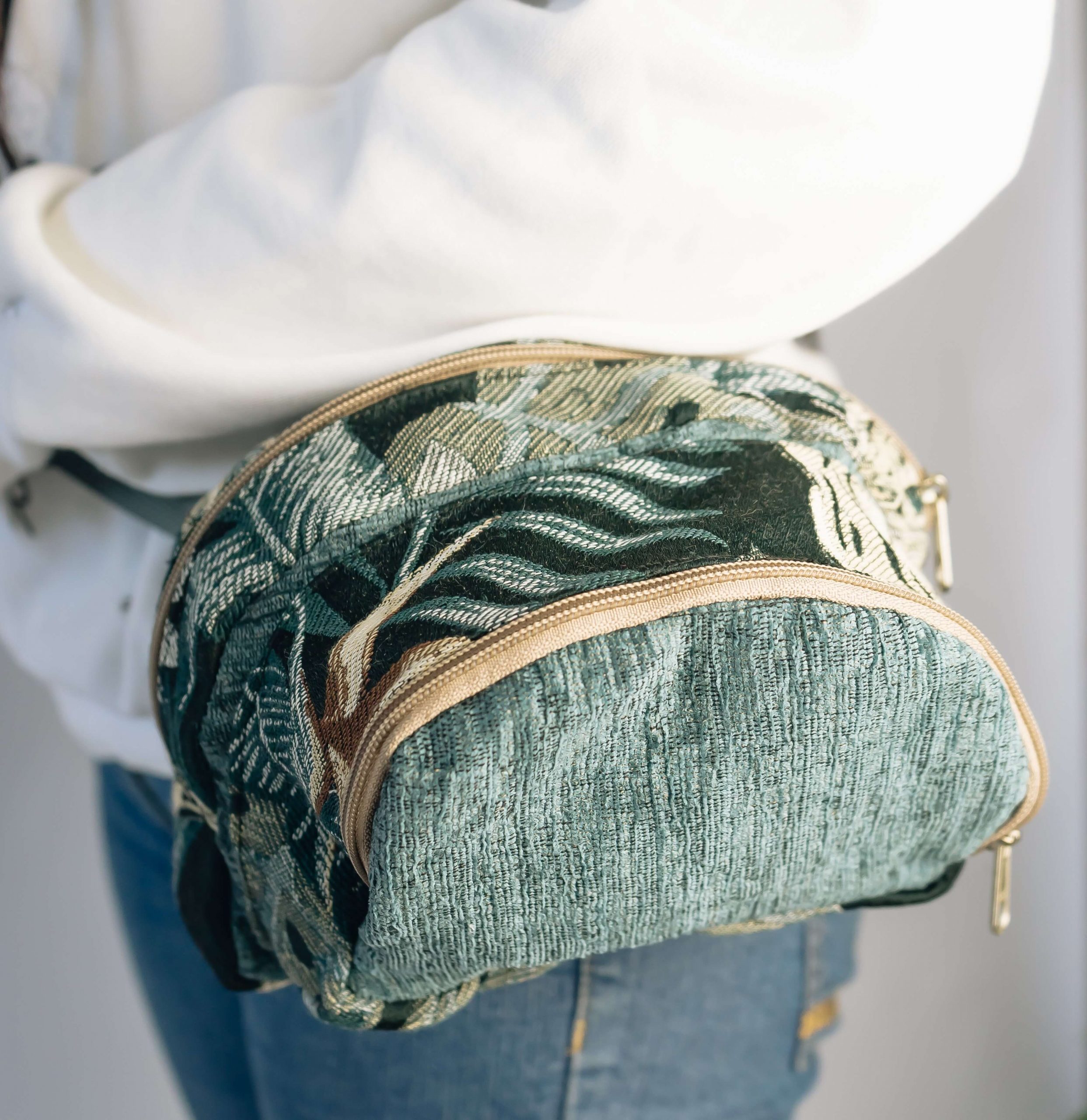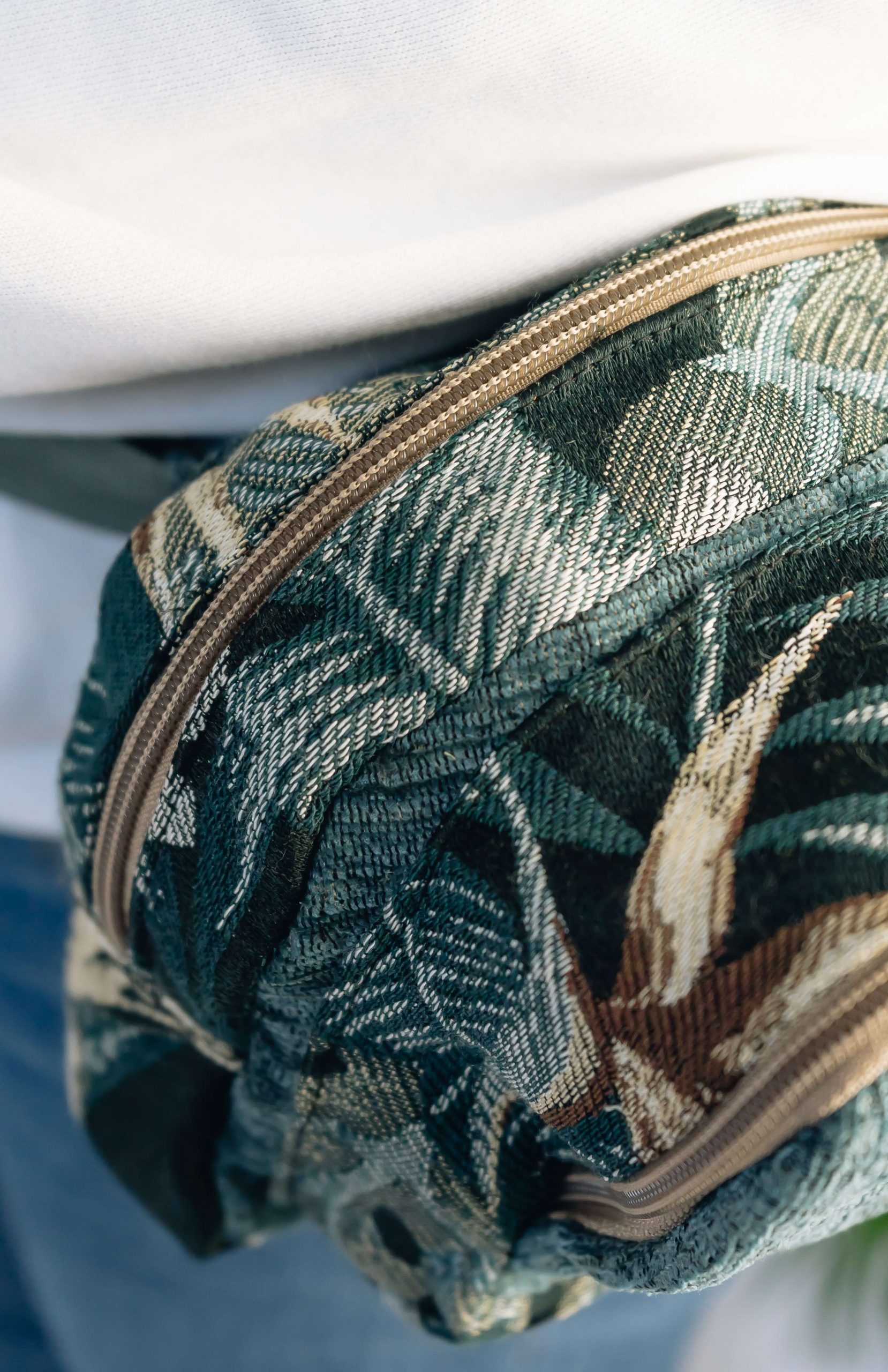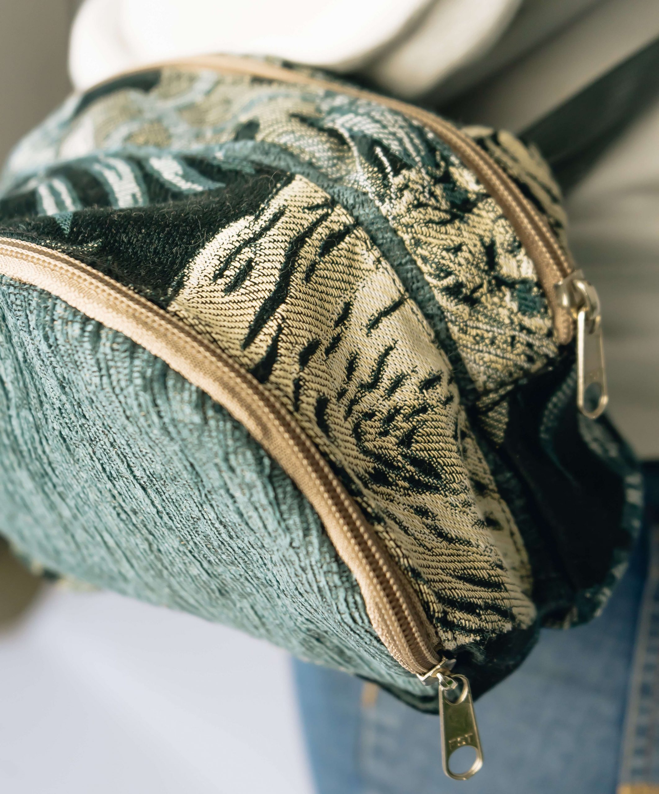 A small bag used for carrying small but essential items made from recycled materials.