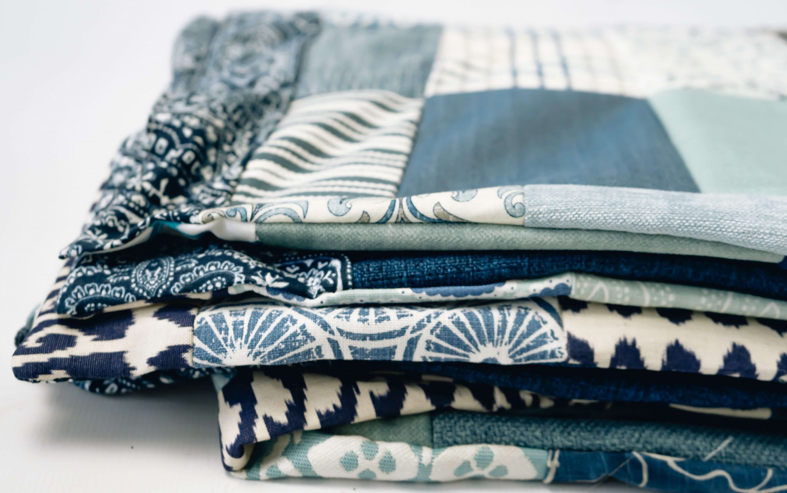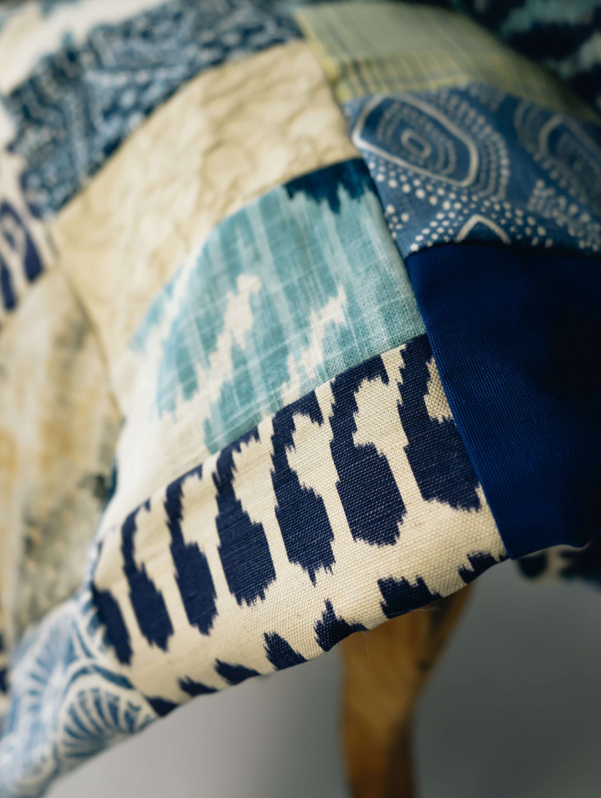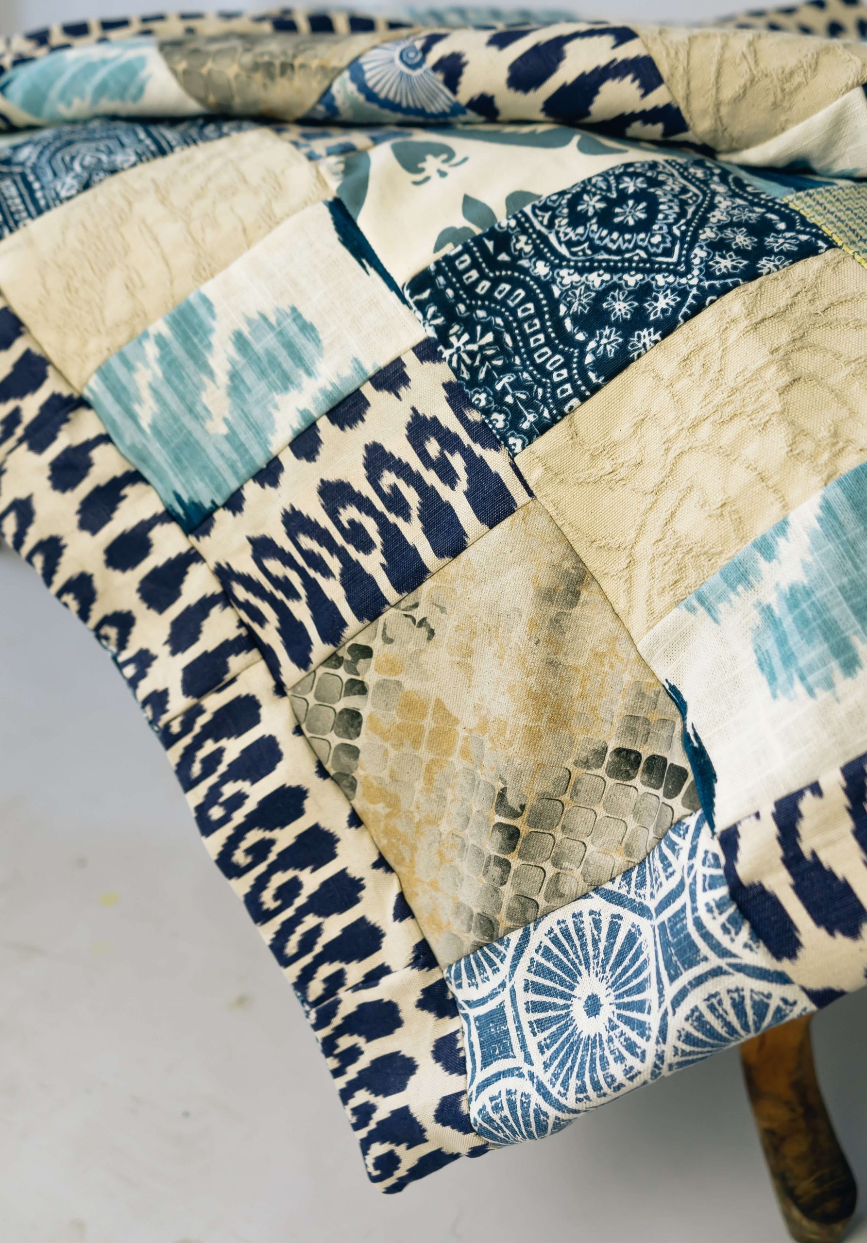Made from stitched fabric to resemble a patchwork blanket. Both functional and decorative